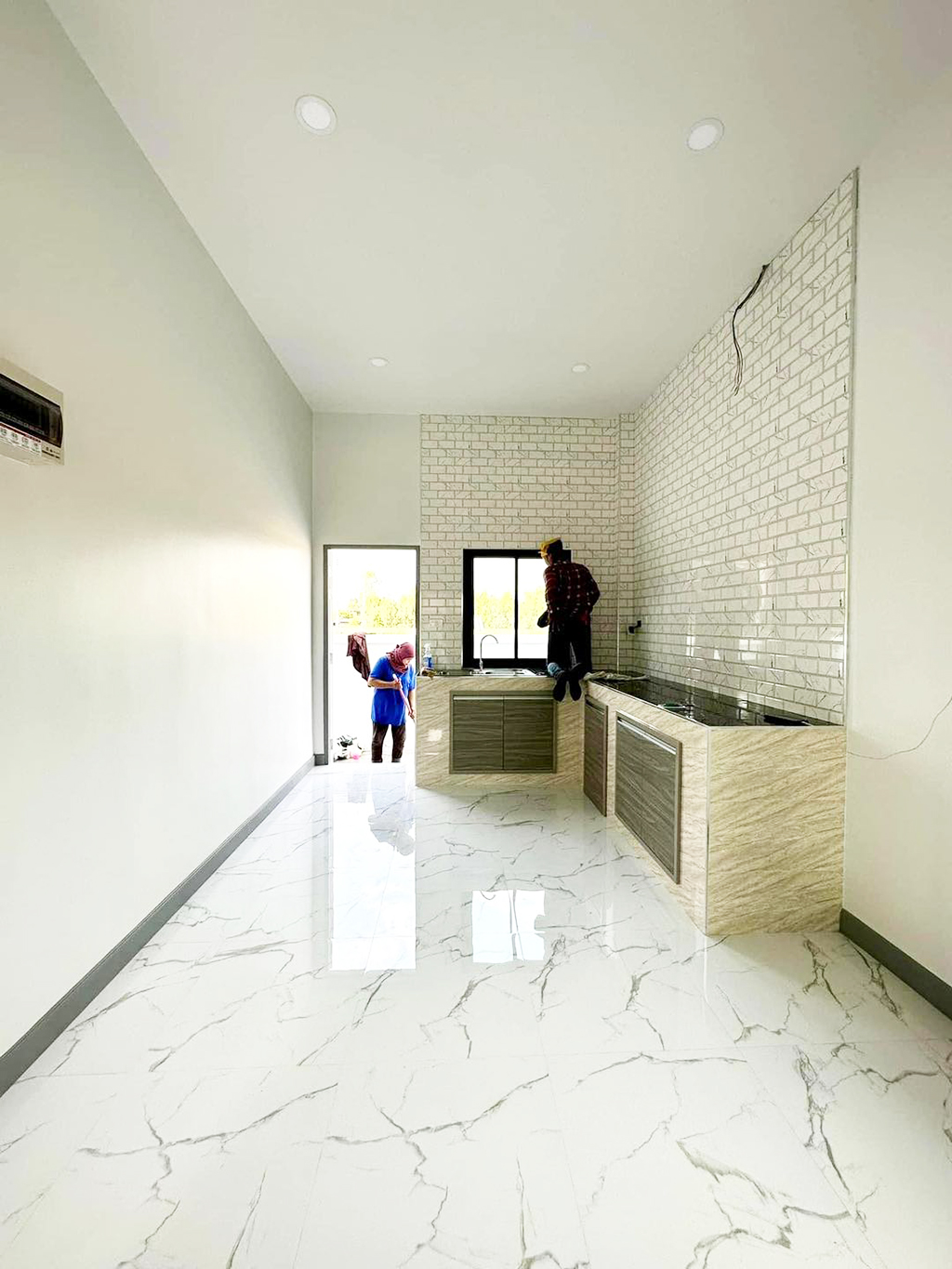 ห้องครัวมีเคาน์เตอร์ครัวอยู่ที่มุมทางขวามือด้านในห้อง และจัดวางรูปตัวแอล  ห้องครัวใช้ผนังโทนสีขาว ฝ้าแบบเรียบด้านบนใช้โทนสีขาวแบบเดียวกัน มีหน้าต่างช่วยรับแสงและระบายอากาศในห้อง