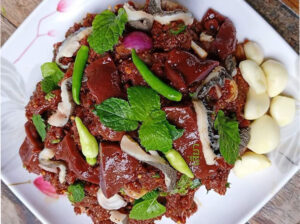 5. โขลกพริกขี้หนู พริกขี้หนูแห้ง กับกระเทียมพอหยาบๆ เสร็จแล้วพักไว้