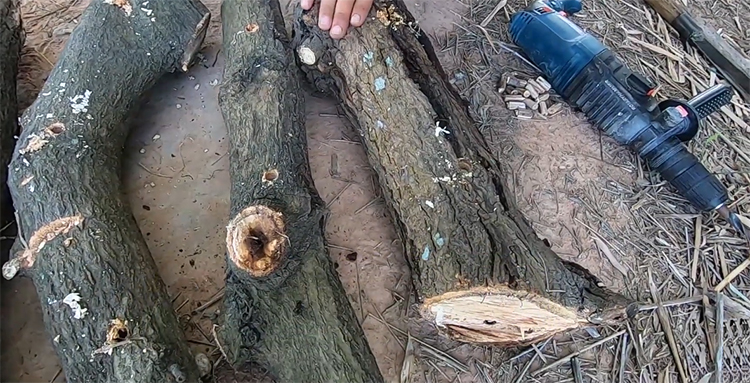 - ท่อนไม้ เช่น ไม้ยางพารา ไม้กระถิน ไม้แค ไม้ข่อย ไม้งิ้ว ไม้นู่น ไม้ไทร ไม้มะม่วง ไม้ขนุน และไม้ก้ามปู