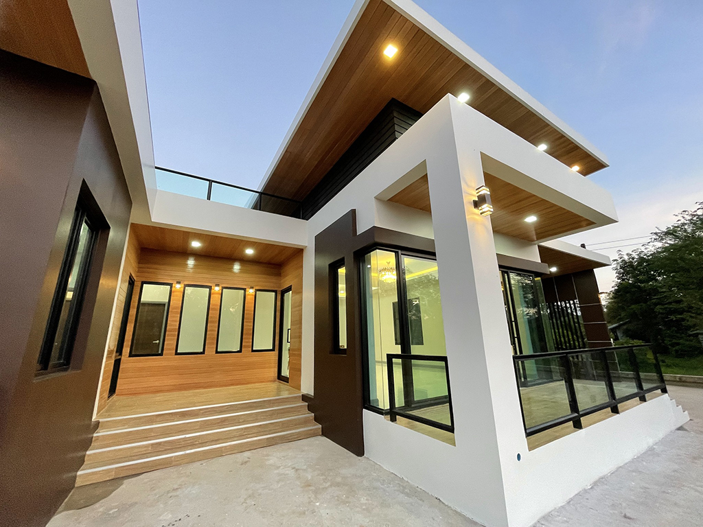 บ้านและสวน » แบบบ้านทรงโมเดิร์น สมัยใหม่ตกแต่งสวยงาม พื้นที่ใช้สอย 190 ตร.ม.